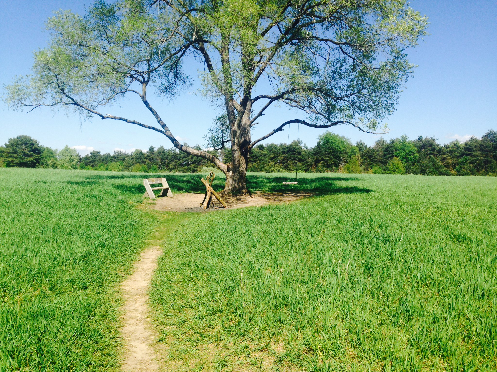 It all starts with a typical trailhead — sign, map, rusty gate. The first quarter mile is covered by a splendid canopy of trees. The sound of traffic fades as you work your way into the preserve. To our right, a little trail jutted out and led to a field that was so nice, I was sure we were trespassing. At the center of the field, an unofficial “playground” with a homemade swing, well worn bench, and makeshift firepit. We’ve left the corporate safety of the municipal park system — we are now in a crowdsourced outdoor recreation facility.