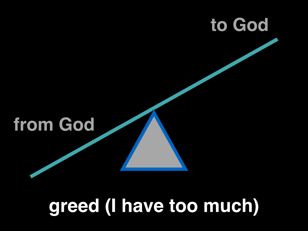 I kept thinking about this idea of the tithe and how it would sound to new ears. I present three scales, acknowledging them as black and white possibilities with plenty of shades of grey in-between. If nothing else, this helps me understand the process of spiritual formation as it relates to stewardship of what God has given us. By the way: for simplicity sake, I want to define our terms by saying that God gives us time, abilities (talents) and $$$$$ (treasures), all framed within His greatest gift to those who say “yes”: salvation. Salvation comes with a purpose, as we’ll see soon. But first, with blessings being from God and stewardship being about giving back to God, here are some possibilities:
