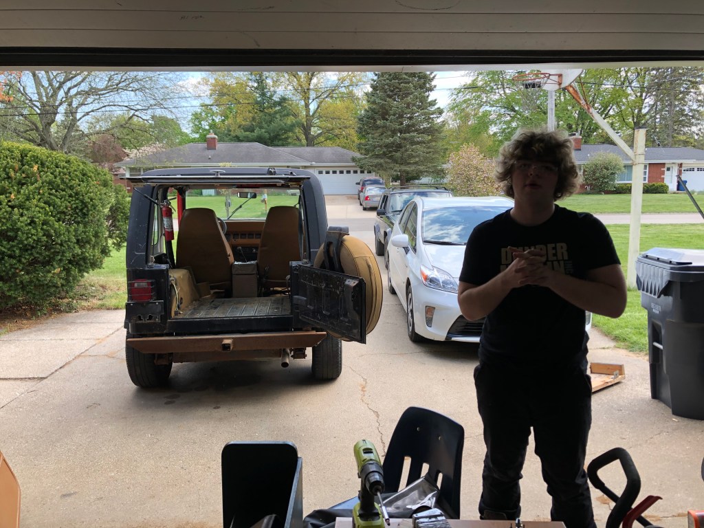 Earlier this year, we were driving my old Jeep Cherokee down an old street. We noticed ANOTHER old Jeep for sale, a Wrangler, and Mac said “Let’s stop and check it out, Dad.” Never wanting to turn down an opportunity to nose around an old Jeep with my son, I said “Sure”. Long story short, I bought him an old Jeep.